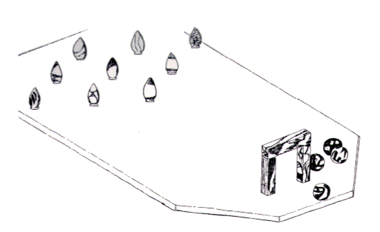 En la tumba a la que nos referimos se encontraron nueve piezas en forma de pequeñas vasijas y que tenían un lado plano. Estaban hechas de alabastro y piedra veteada. Al no tener ninguna perforación, descartando así que fueran parte de un collar, se pensó en el lado plano para teorizar que las mismas se debían colocar sobre ese lado. Junto a estas nueve piezas se encontraron cuatro bolas perfectas de porfirio. Esto llevó a los excavadores a pensar en una especie de juego, algo muy a tener en cuenta al tratarse de la tumba de un niño pequeño. Además también se encontraron tres barras de piedra gris, dos verticales y una horizontal más larga, que harían las veces de portería.