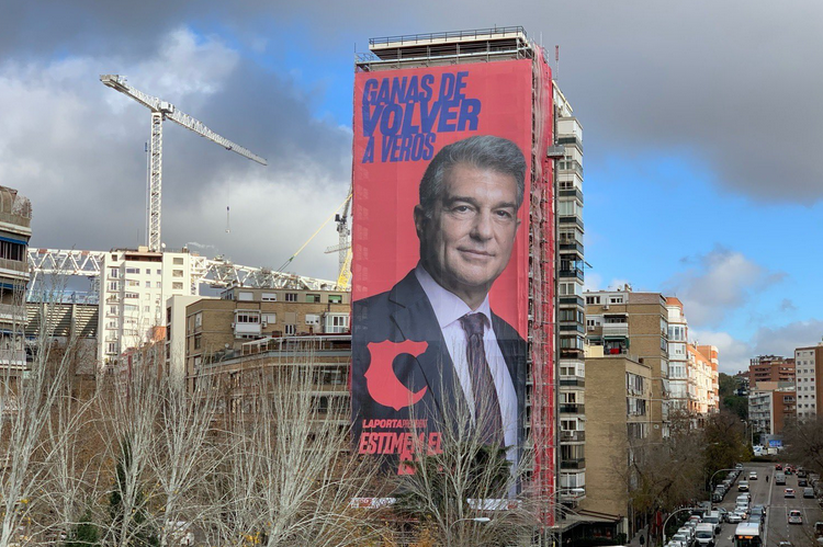 Joan Laporta quiere volver a ser presidente del Barcelona y sabe perfectamente cómo levantar la voz para que todo el mundo escuche su mensaje. Su última jugada electoral ha sido colocar un enorme cartel electoral muy cerca del Santiago Bernabéu para anunciar su candidatura.
