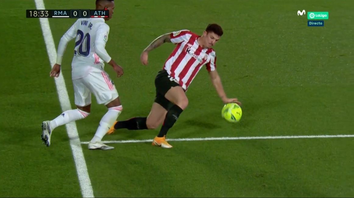 No hay lugar a dudas en que el capitán toca la pelota con una parte del cuerpo que no está permitido, que lo hace dentro del área y además, intercepta la trayectoria de una pelota que tenía continuidad para el Eibar porque estaba Kike García esperando en boca de gol. Pero la pregunta es, ¿es penalti? No todas las manos lo son.