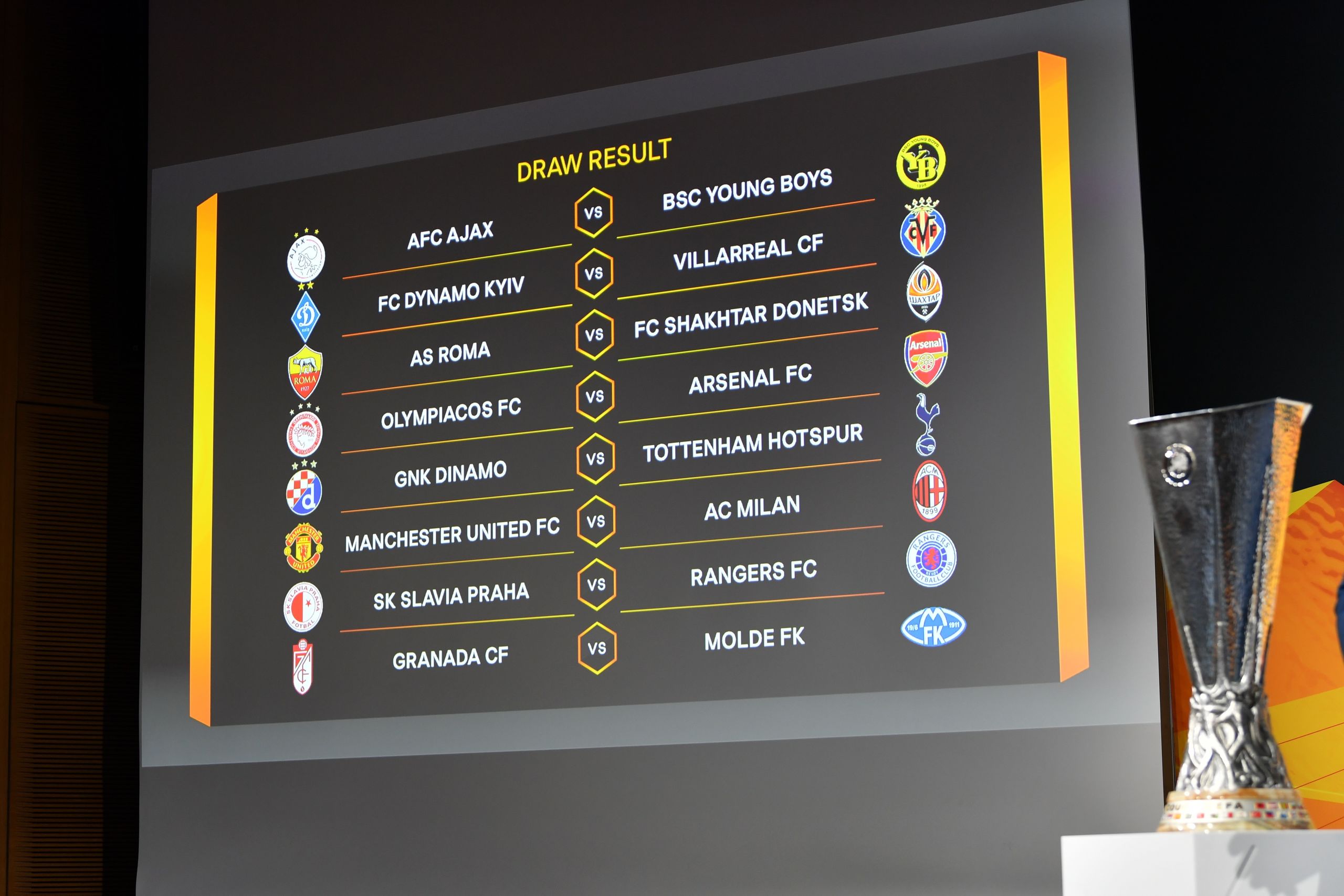La fortuna ha deparado un cruce entre el Dinamo de Kiev y el Villarreal mientras que el Granada se medirá al Molde. Ucrania y Noruega contra los equipos españoles. El resto de cruces han sido los siguientes: