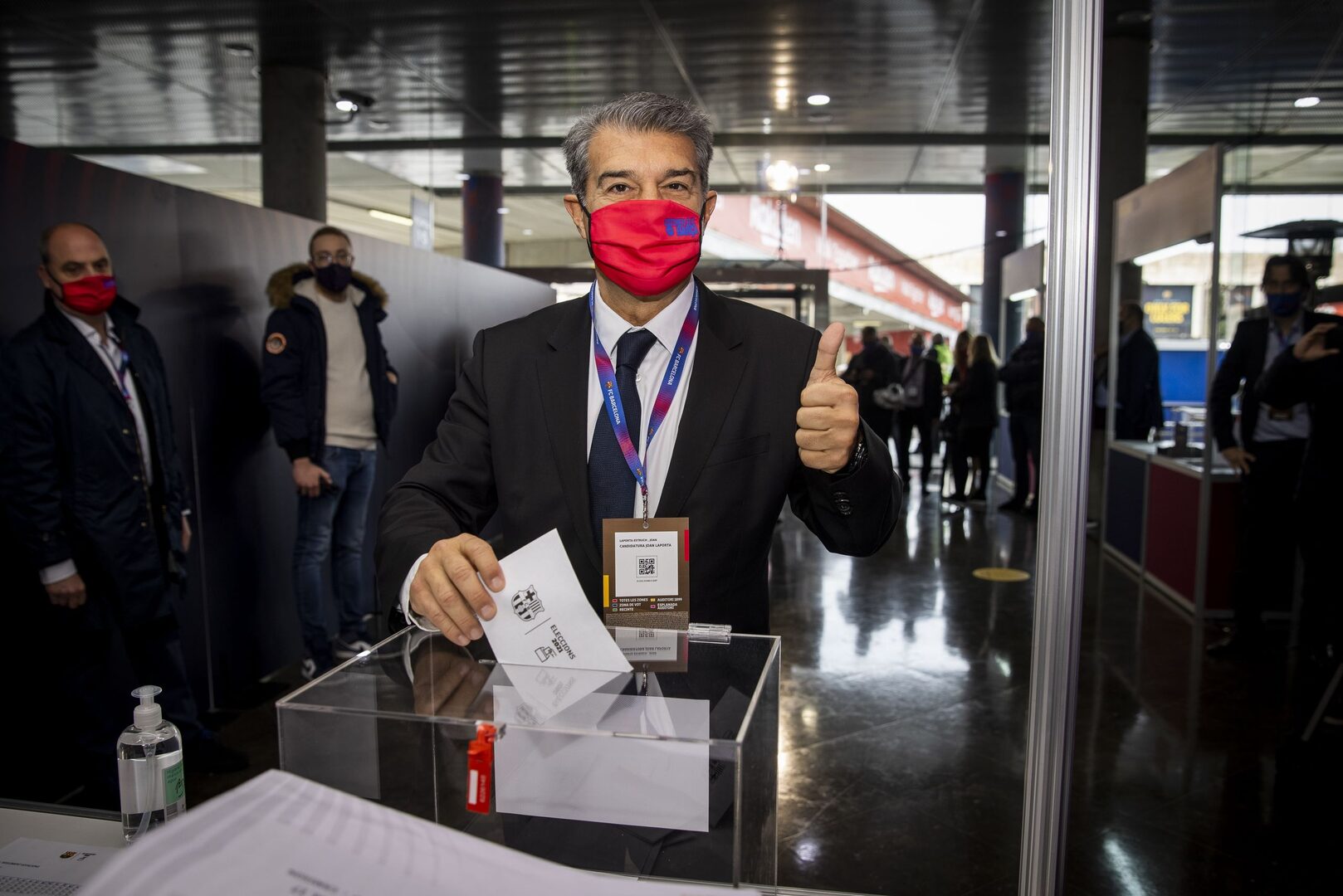 El abogado Joan Laporta ganaría las elecciones a la presidencia del FC Barcelona con el 58,3% de los votos, según un sondeo que hacía público la televisión autonómica catalana TV3 pocos minutos antes de que finalizara la votación. En segunda posición quedaría Víctor Font, con el 31,1 por ciento de los votos, mientras que Toni Freixa conseguiría el 9,3%.