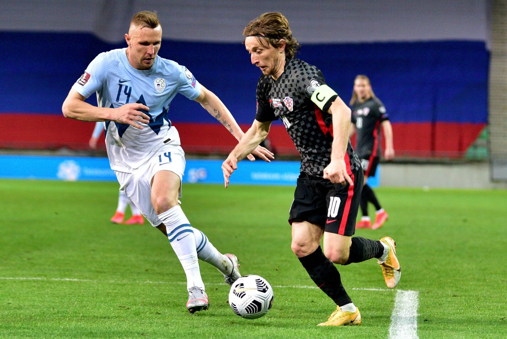 Luka Modric (d), en acción durante el Eslovenia-Croacia. | EFE
