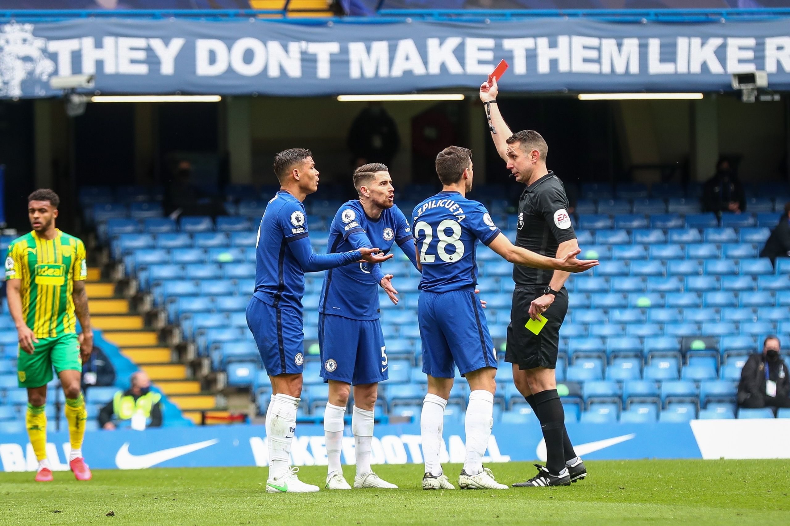 La expulsión de Thiago Silva a la media hora, con el Chelsea arriba en el marcador, ha terminado precipitando la derrota de los blues, que acabaron goleados por el West Bromwich Albion (2-5).