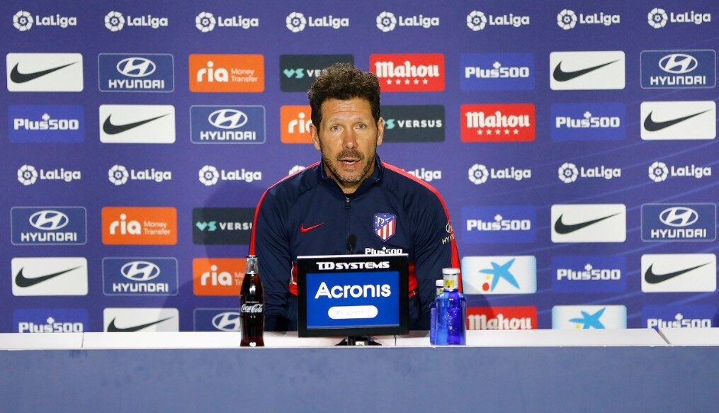 Diego Pablo Simeone ha hablado en rueda de prensa en la previa del partido del Atlético ante el Eibar en el Wanda Metropolitano. El choque se jugará a las 16:15 horas de este domingo y sobre la mesa muchos temas a tratar, como por ejemplo las bajas de Joao y Suárez y la posible presencia de Dembélé en el once o saliendo desde el banquillo.