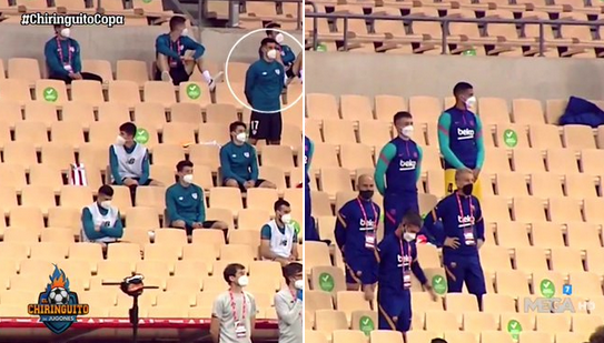 📹 IMAGEN #JUGONES | Así han reaccionado los BANQUILLOS de Athletic y Barça al HIMNO español en la final. #ChiringuitoCopa pic.twitter.com/Qln7Zbmmsg