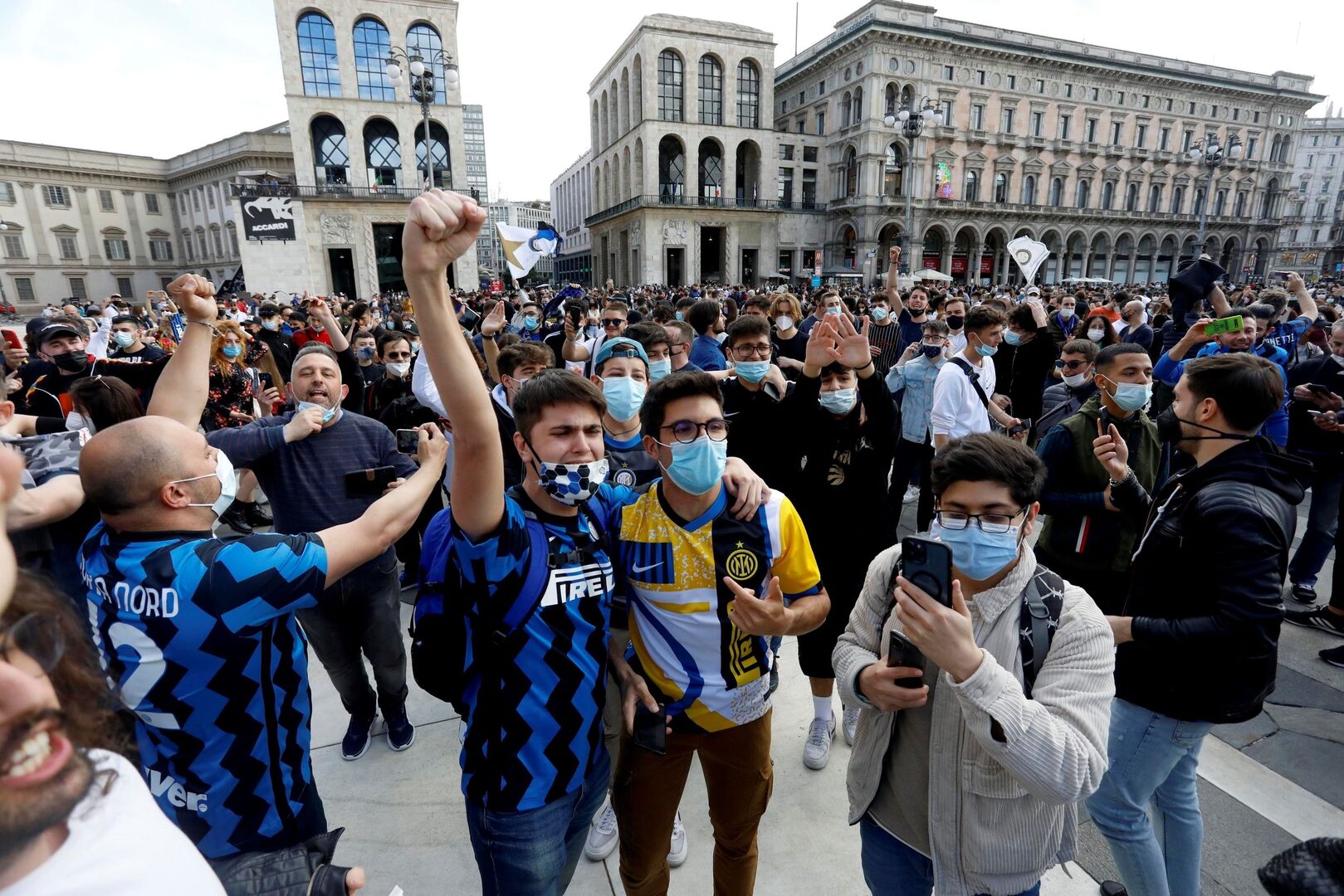 Tras la consecución del título, cientos de aficionados del Inter, sobre todo jóvenes, se echaban a la calle para celebrar este éxito en la Plaza del Duomo de Milán.