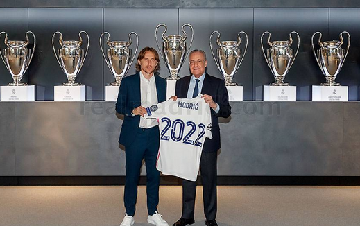 Hay que recordar que Modric, cuyo contrato acababa el 30 de junio, llegó a Madrid en 2012 y hoy firmó la renovación en la ciudad deportiva de Valdebebas acompañado por el presidente, Florentino Pérez, quien le entregó una camiseta con su nombre y el dorsal 2022. Todo ello después de un fin de semana en el que marcó el 2-1 ante el Villarreal, aunque de poco sirvió porque el 1-2 de Luis Suárez en el Valladolid-Atlético de Madrid le dio la liga a los colchoneros.