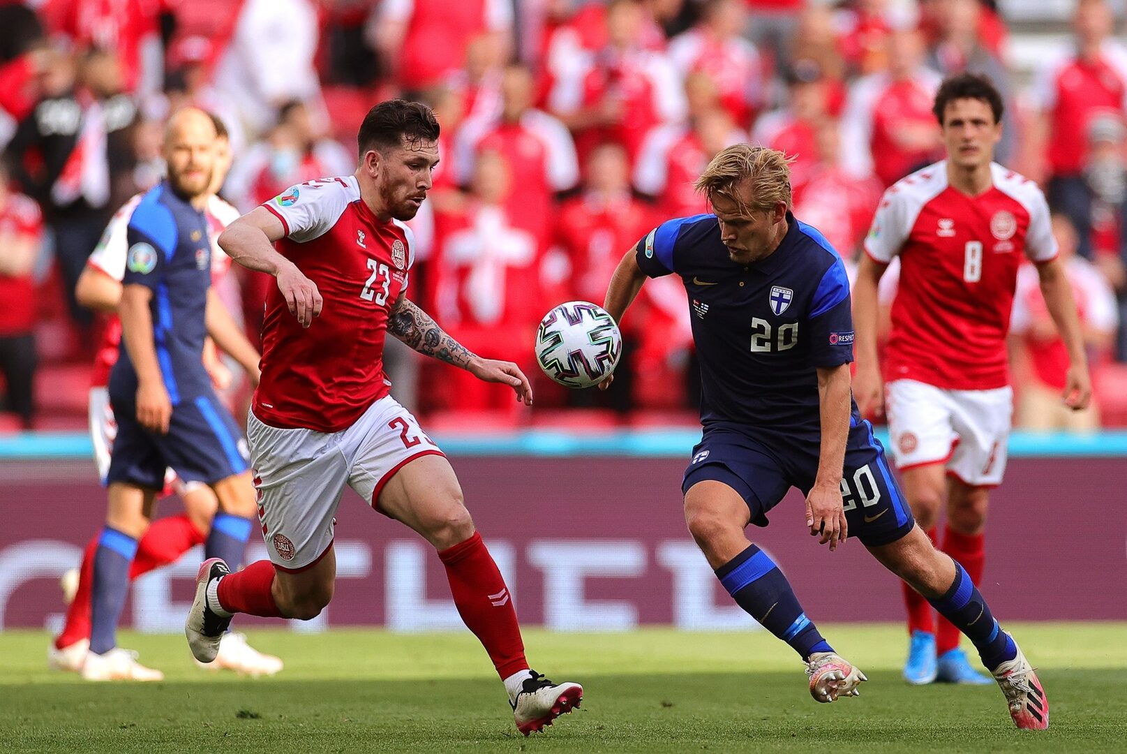 Dinamarca salió a comerse a Finlandia, manteniendo la misma receta, aunque algo más acelerada. Con Mathias Jensen en lugar de Eriksen. Fue el jugador del Brentford con pasado fugaz en el Celta el que avisó con un tiro que se fue alto.