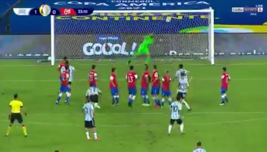En la falta ejecutada con impecable técnica, el capitán de la Albiceleste superó la barrera y clavó el balón lejos del alcance de Claudio Bravo, su excompañero del Barcelona.