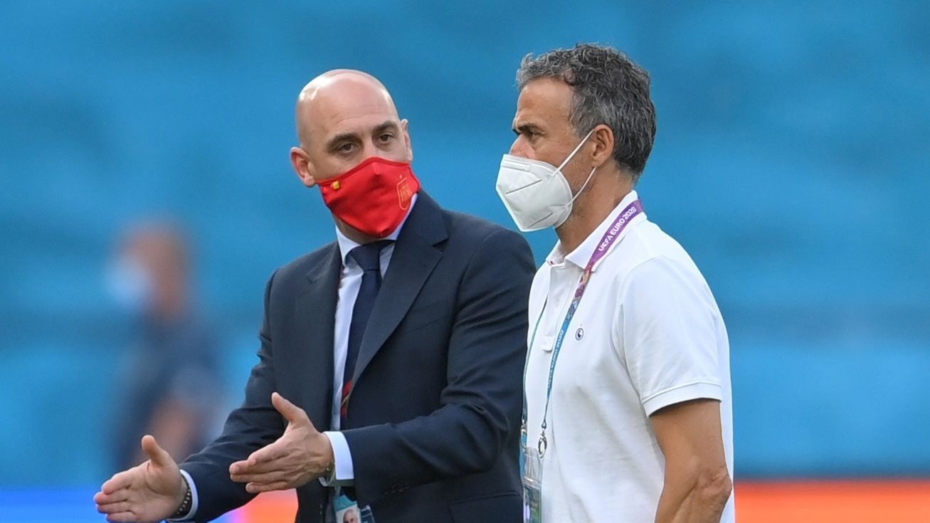 El presidente de la Real Federación Española de Fútbol (RFEF), Luis Rubiales, apoyo la continuación del seleccionador Luis Enrique Martínez tras la goleada a Eslovaquia (0-5) y obtener la clasificación matemática para los octavos de final de la Eurocopa. Rubiales afirmó que el asturiano seguirá ocupando el banquillo de la selección "el tiempo que quiera".