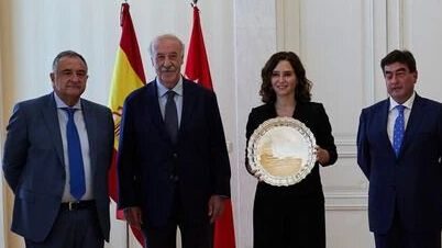 La presidenta de la Comunidad de Madrid, Isabel Díaz Ayuso, ha ensalzado este lunes la figura del ex seleccionador nacional de fútbol Vicente del Bosque por lograr unir a España "en un objetivo común" con las victorias en el Mundial de 2010 y la Eurocopa de 2012 y ha insistido en el apoyo del Ejecutivo regional al deporte en todas sus facetas.