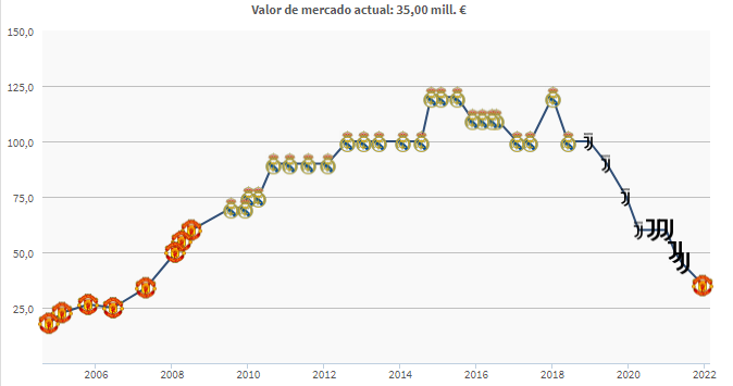 De vuelta en Manchester, donde sus goles han salvado en más de una ocasión a los ‘Diablos Rojos’, el bajón es deportivo, pero también se aprecia en el valor de mercado, actualmente el luso está valorado en 30 millones de euros. Sus análisis confirman que Cristiano Ronaldo regatea menos que en el Real Madrid, y en términos económicos ha protagonizado su quinto descenso de valor de mercado. Curiosamente, todos tras dejar el Real Madrid para marcharse a la Juventus.