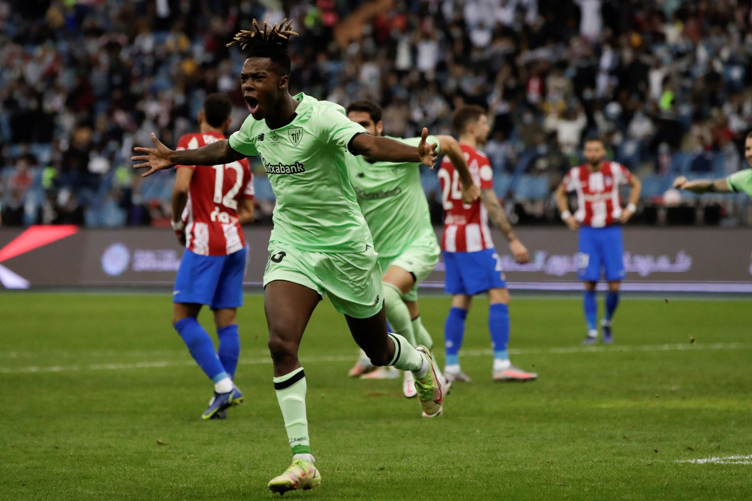 Va de tapado y de momento ya está en la final de la Supercopa de España, título que conquistó el año pasado. El Athletic de Bilbao se ha clasificado para la gran final del próximo domingo tras sorprender al Atlético de Madrid (1-2), gracias a los goles de Yeray Álvarez y Nico Williams, en apenas cinco minutos, remontando el tanto inicial de Unai Simón en propia meta, para confirmar su presencia en la pelea definitiva por el primer título de la temporada.