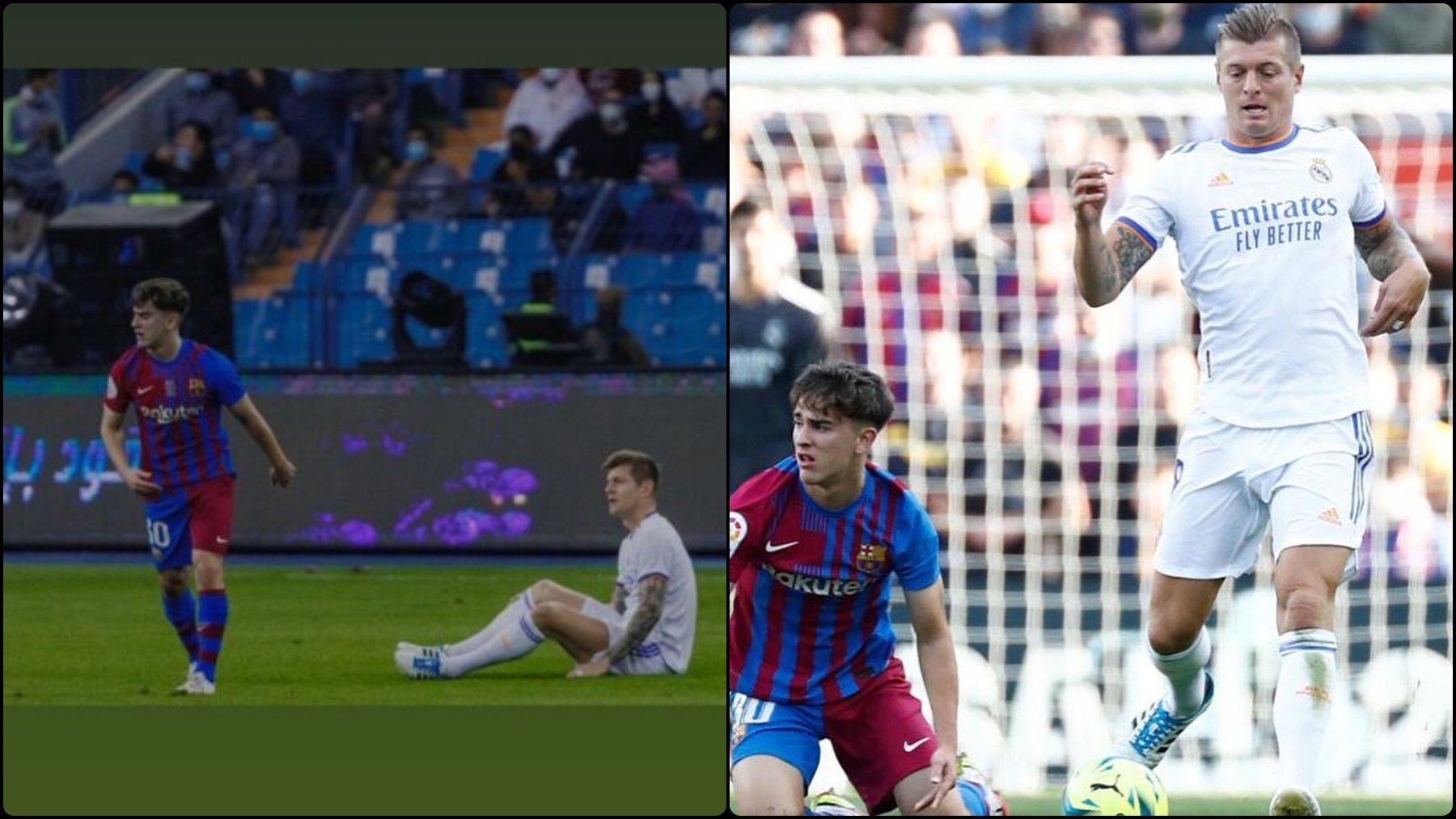 Ahora, después del último Clásico, el correspondiente a la Supercopa de España en Arabia Saudí, Gavi subió a su cuenta de Instagram una historia en la que se le veía en el campo con Toni Kroos a su lado en el suelo, es decir, al contrario que en el anterior partido que jugaron Real Madrid y Barcelona.