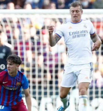 Y esta es la foto de Kroos en el primer Clásico de la temporada que ganó el Real Madrid en el Camp Nou aún en 2021: