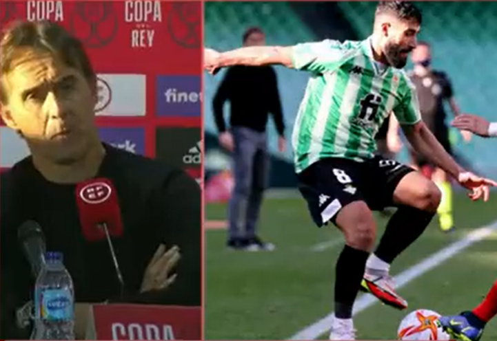 Más allá de esto se pudo ver antes de las palabras de Lopetegui a Andrés Guardado, jugador del Betis, burlándose de lo sucedido con Joan Jordán.
