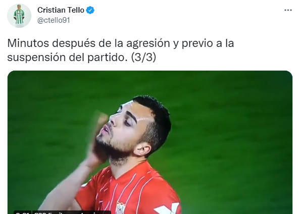 Minutos después de la agresión y previo a la suspensión del partido. (3/3) pic.twitter.com/iRsWFfwejv