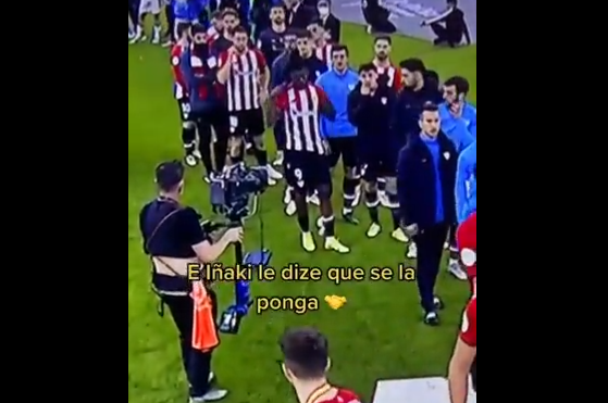 La imagen podría haber quedado ahí como ya ha pasado en otras finales nacionales e internacionales, como por ejemplo en la pasada final de la Champions con el Manchester City o en la Eurocopa con la selección inglesa. Pero no, en el Athletic no se quedó ahí. Iñaki Williams, que vio lo que hacía su hermano, le gritó desde el fondo de la fila que no se quitara la medalla.