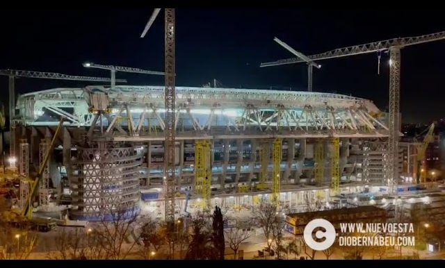 La nuevas luces, que parecen una discoteca futurista en pleno Paseo de la Castellana, empiezan a mostrar como será el estadio una vez se complete la fachada con aire de ‘nave espacial’ que tanta expectación está generando.