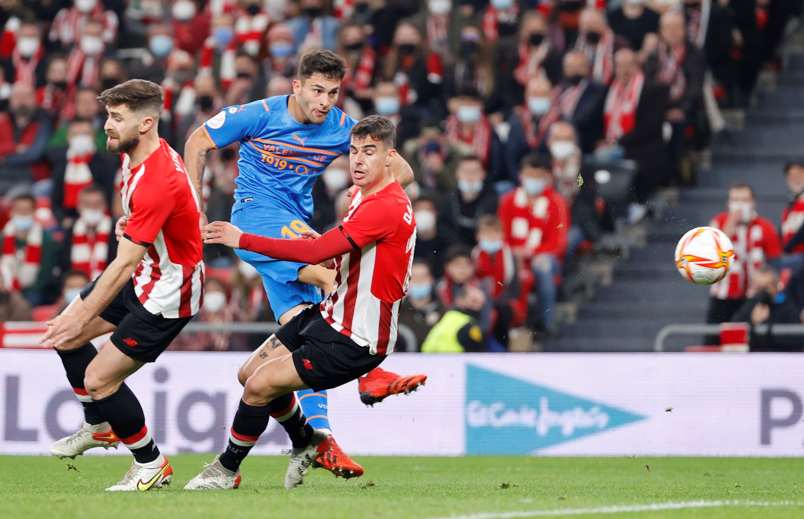 Athletic Club y Valencia han empatado en San Mamés (1-1), en la ida de semifinales de la Copa del Rey, y será el estadio de Mestalla, el próximo 2 de marzo, el que decidida la eliminatoria que han mandado igualada a la capital del Turia los tantos de Raúl García y Hugo Duro. El 1-1 final refleja lo ocurrido con bastante fidelidad lo ocurrido en un encuentro que el Athletic dominó la segunda mitad de la primera parte y el Valencia interpretó mejor el segundo tiempo con el choque volviéndose cada vez más bronco.