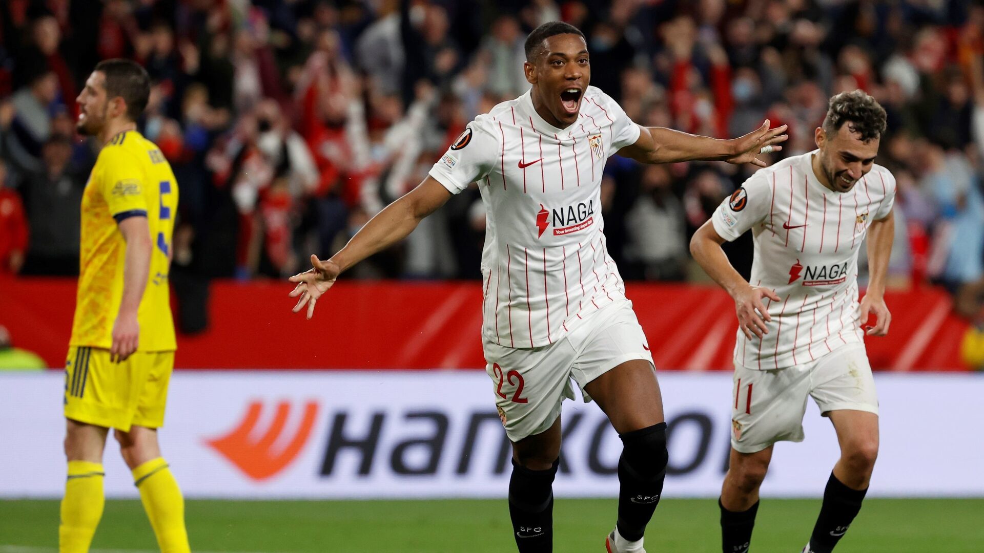 El 1-1 dio paso a la fase más movida del choque, pues en sólo dos minutos el Sevilla, en un arreón final, deshizo primero el empate con un buen tanto de volea de Ocampos en el 44 y, un minuto después, Martial se estrenó como goleador sevillista cuando, a pase de un incisivo Papu Gómez, finalizó una contra para marcar el 3-1 de tiro cruzado.