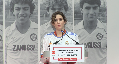 La presidenta de la Comunidad de Madrid, Isabel Díaz Ayuso, ha sido la encargada de presidir el acto de homenaje a la Quinta del Buitre durante los Premios Internacionales del Deporte que concede la Comunidad y que en este caso han recaído sobre Emilio Butragueño, Manolo Sanchís, Martín Vázquez, Michel González y Miguel Pardeza.