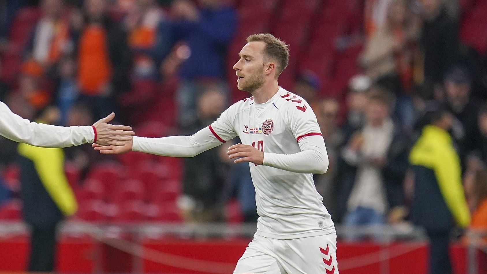 Eriksen, que volvía a una convocatoria con la absoluta más de nueve meses después padecer el suceso que paralizó el mundo del fútbol mientras Dinamarca se enfrentaba a Finlandia en Copenhague, entró después del descanso en sustitución de Jesper Lindstrom y recibió una cerrada ovación del Johan Cruyff Arena.