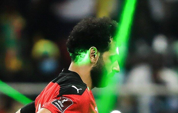I mean, just look at this. Salah sails his penalty over… and surely anybody would, given the lasers.
