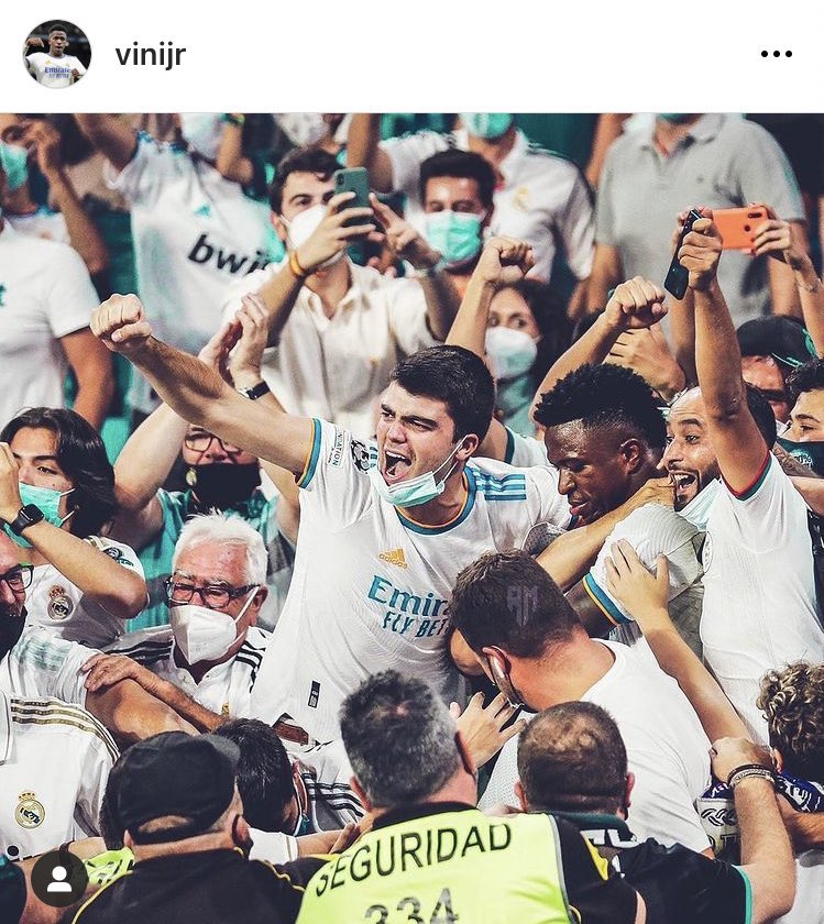 El tercer futbolista del Real Madrid que ha decidido sumarse a esta acción de mandar un mensaje a través de una fotografía ha sido Vinicius. En su caso ha escogido un gol de Liga, ante el Celta de Vigo. Se subió a la grada para celebrarlo con varios aficionados tras volver a contar con aficionados en el Santiago Bernabéu.