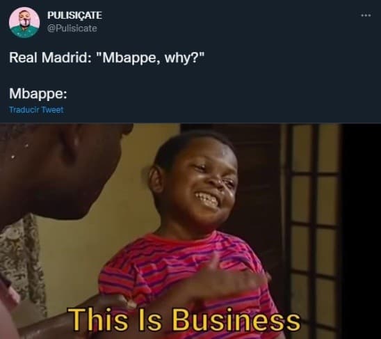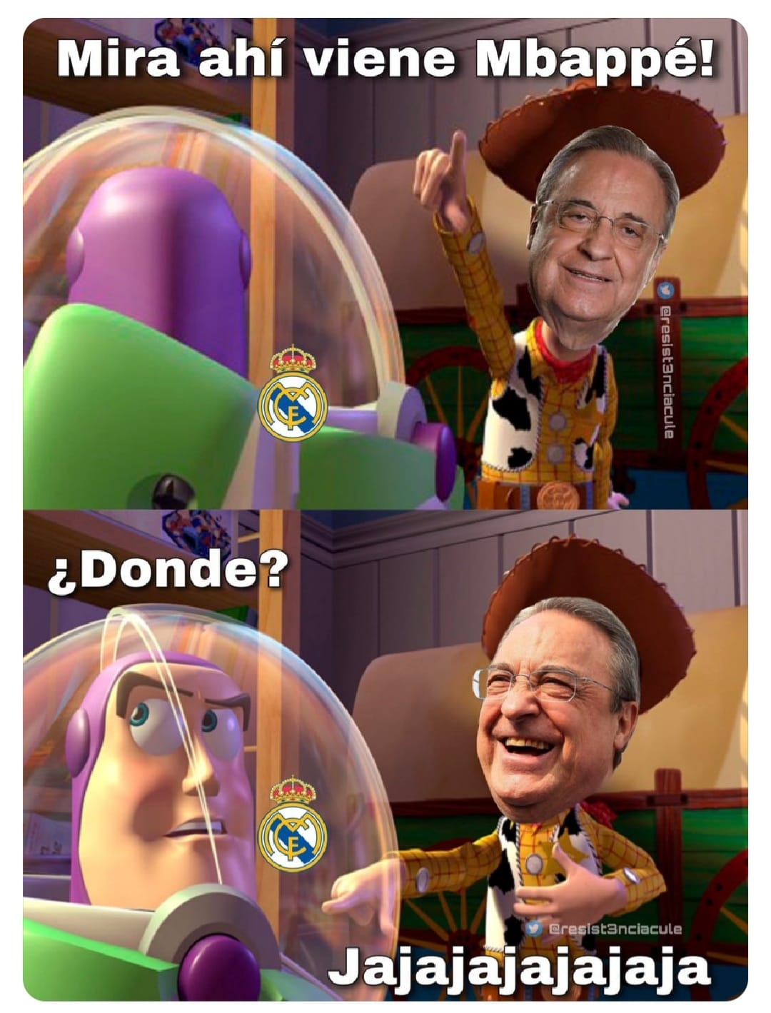 Las redes sociales son la mejor opción para reírse en estas ocasiones. La cobra de Mbappé al Real Madrid ha provocado muchos memes, seguramente creados por aficionados que no son del Real Madrid y que están celebrando esta noticia.