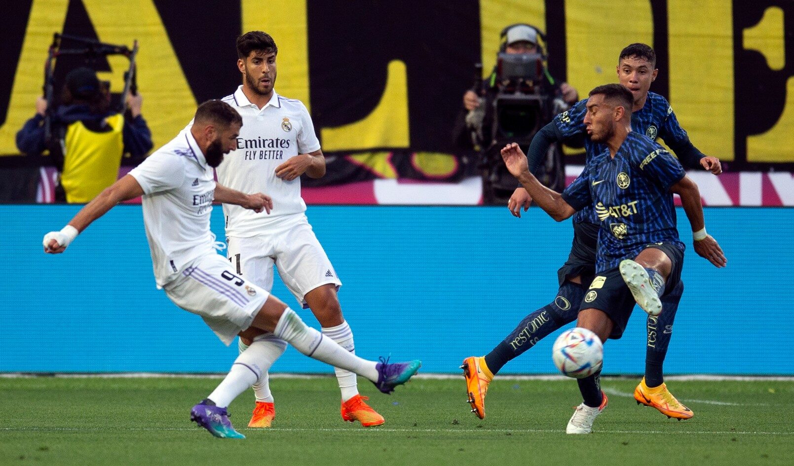 No lograba el Madrid sacudirse la presión del América, que incluso ponía en peligro a los merengues con algún contraataque. Sin embargo, en el minuto 22, Karim Benzema colocó un tiro ajustadísimo desde fuera del área al palo izquierdo del Memo Ochoa para empatar el partido. Un gol de fantasía. El francés, que jugaba su primer partido de pretemporada, trató de espolear al equipo y se le vio arengando a Asensio y Vinícius para meterle más intensidad al partido.