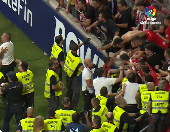 Los hechos fueron captados por varios aficionados y en las imágenes se puede ver incluso el lanzamiento de objetos para impactar en el jugador del Atlético: