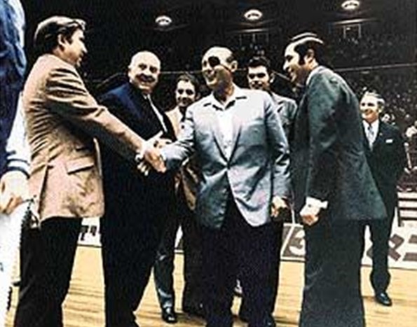 El único roce (menor) de Raimundo Saporta con el régimen franquista se produce en 1973 cuando el club blanco agasaja y condecora al general israelí Moshe Dayan en un partido de baloncesto Maccabi de Tel Aviv-Real Madrid, pues las imágenes no gustaron en absoluto en el Gobierno. Las relaciones entre los dos clubes fueron siempre excelentes a pesar de que España no reconocería al Estado de Israel hasta 1986. Saporta tuvo mucha influencia en ello.