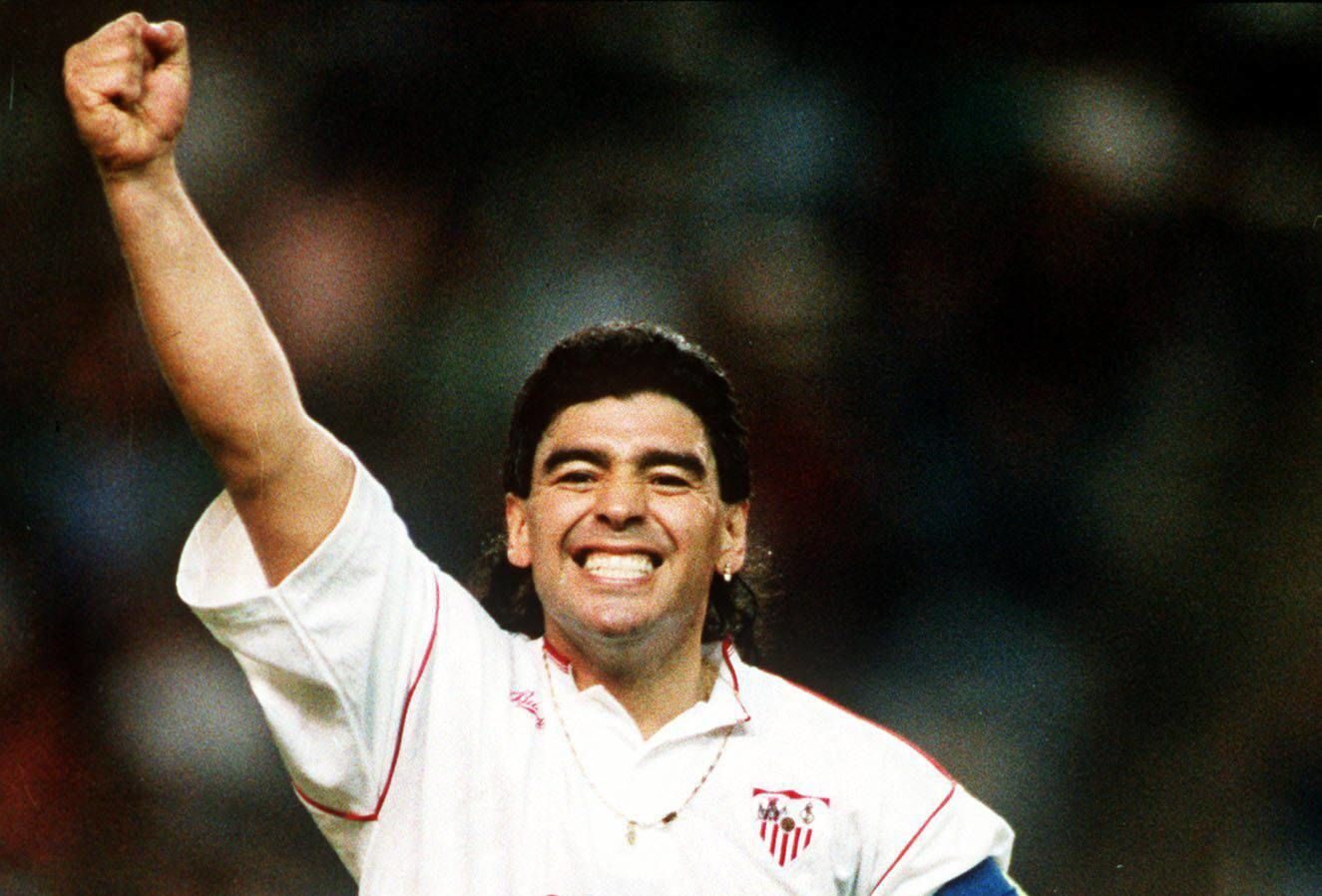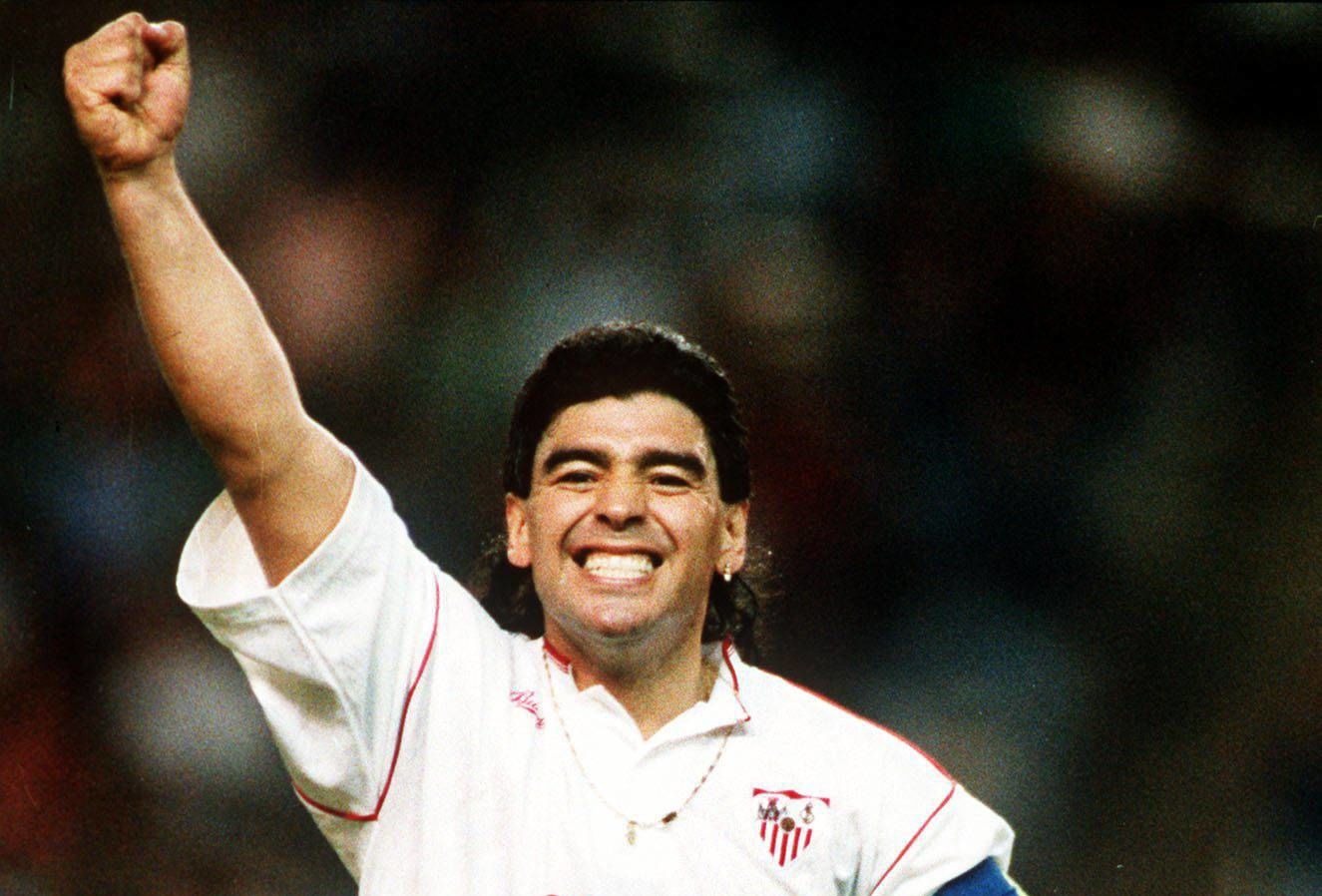 Maradona había llegado a Sevilla tres semanas antes pero no podía debutar hasta que la forma física se lo permitiera y hasta que terminara de cumplirse una sanción por doping de abril de 1991, en Nápoles. Estuvo en el palco en dos encuentros del Pizjuán y jugó un amistoso ante el Bayern a finales de septiembre. Pero aquel 4 de octubre de 1992, hoy hace treinta años, debutó oficialmente con la elástica sevillista. Fue un 2-1 en contra de los de Bilardo, el campeón del mundo con Argentina en 1986. Al mítico técnico le había encargado el presidente Luis Cuervas la tarea de llevar al equipo aquella temporada. Ya había ilusionado, a finales de junio, su llegada. Imagínense la de Maradona.