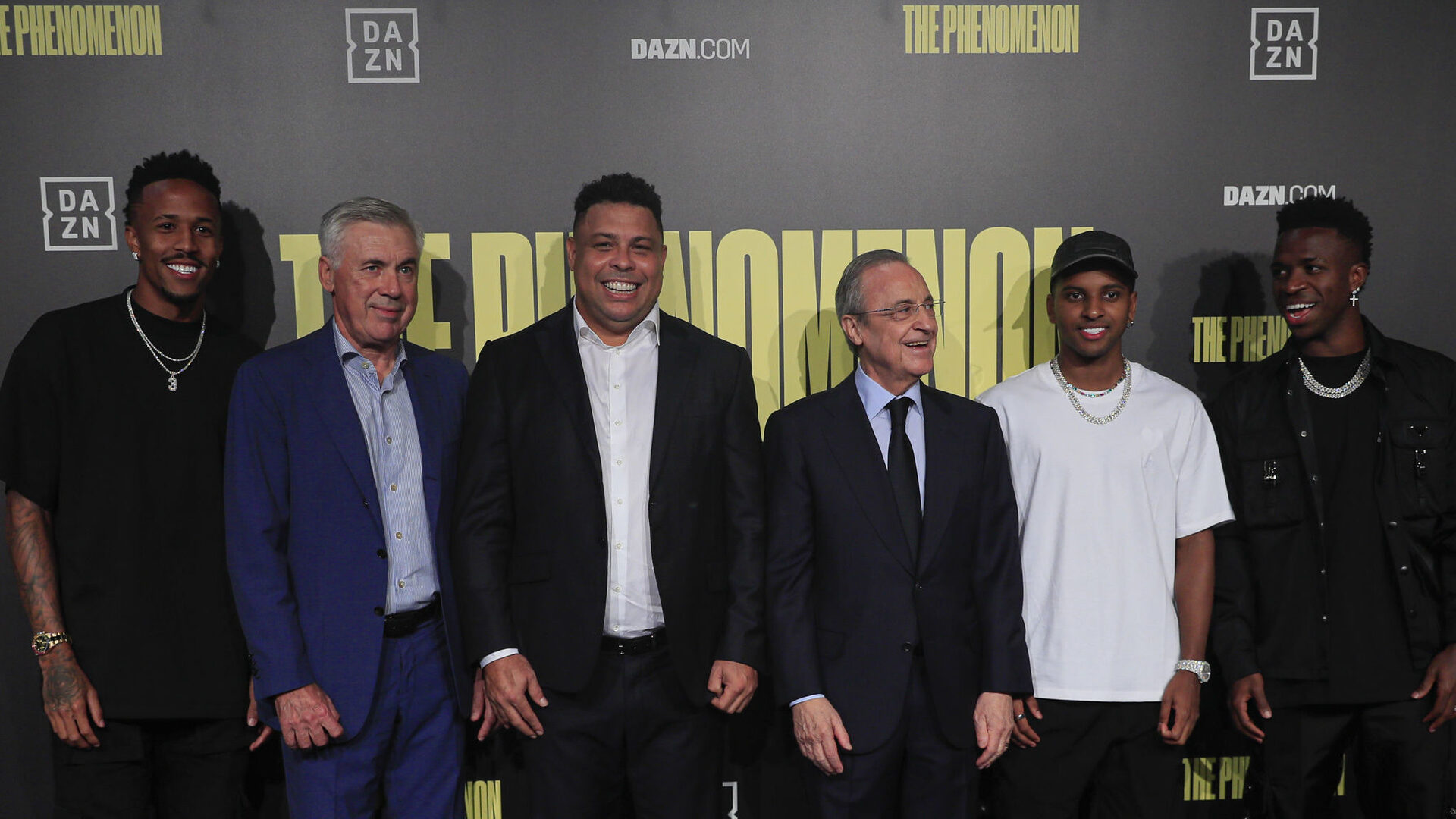 Así, en la alfombra roja de los Cines Callao, junto al Fenómeno se encontraban presentes el presidente del club madridista, Florentino Pérez, el entrenador Carlo Ancelotti y los tres jugadores brasileños que hay en la primera plantilla blanca: Eder Militao, Vinicius Júnior y Rodrygo Goes.