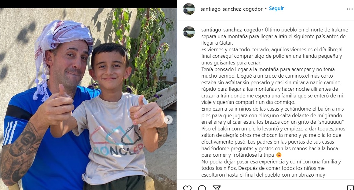 "Último pueblo en el norte de Irak, me separa una montaña para llegar a Irán el siguiente país antes de llegar a Qatar", fue su último mensaje público en su cuenta de Intsgram.