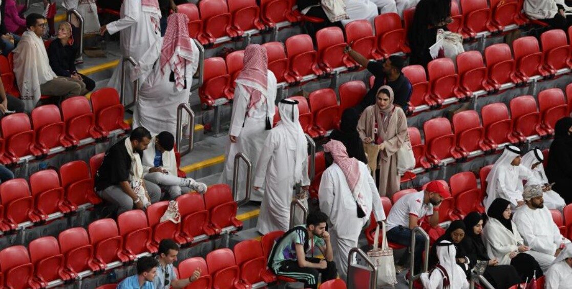 40% del estadio retirado. El Emir de Qatar debe instruir a sus súbditos en nacionalismo y lealtad. Así no va. pic.twitter.com/9SgGYfh3uD
