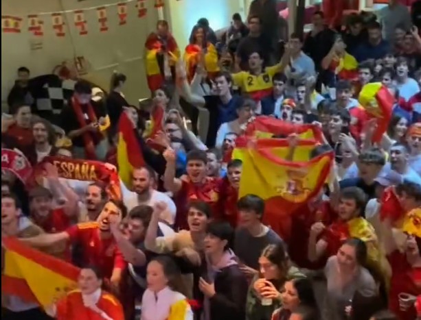 Finalmente, más de 400 personas se dieron cita en la sala Astoria para presenciar en pantalla gigante el España-Alemania y otras 500 se quedaron fuera en la lista de espera. Las entradas se agotaron en menos de 48 horas y, hora y media antes de comenzar el partido, en la sala comenzó a fluir la fiesta española en una previa donde hubo rumba catalana y luego los aficionados vibraron al ritmo de Quédate, la canción del cantante Quevedo que ha sido un auténtico éxito en este año 2022.