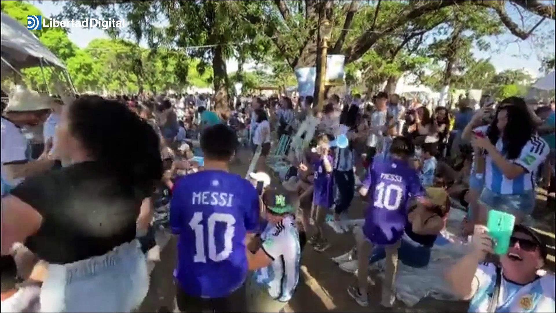 La euforia se desató con los goles de Messi y Enzo Fernández que otorgaron la victoria a la albiceleste. Los fans argentinos corearon los nombres de sus ídolos, mostraron orgullosos la camiseta del equipo y vaticinaron que los suyos serán los próximos campeones del mundo.