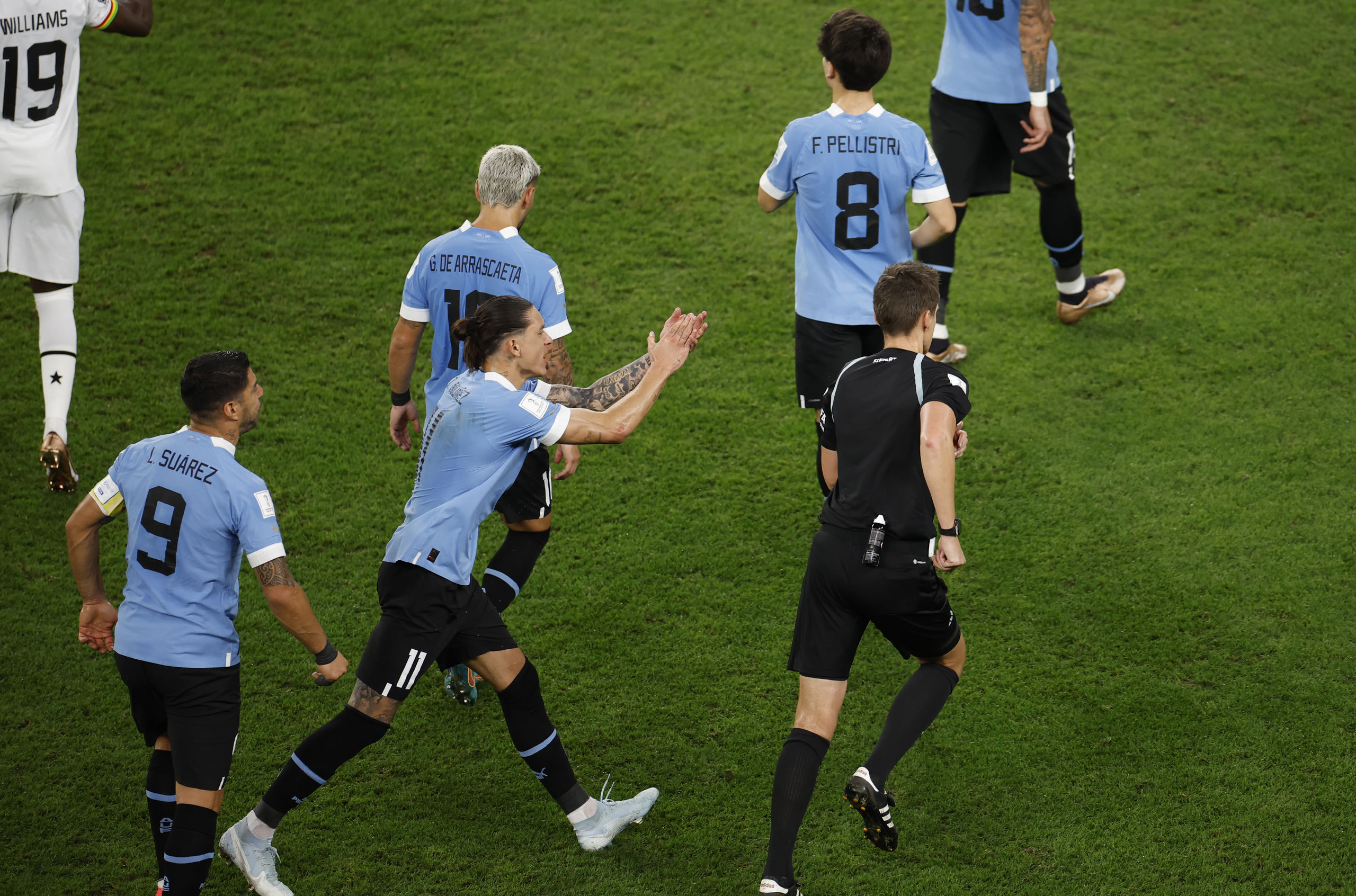 Otra de las jugadas polémicas de las que se ha quejado y mucho Uruguay ha sido en el encuentro disputado hace unos minutos frente a Ghana. Los charrúas pedían pena máxima sobre Darwin Núñez, pero el colegiado decretó que el defensa africano tocó el balón primero y, por tanto, no era nada. Los jugadores sudamericanos acabaron el encuentro desquiciados y se fueron tras el árbitro, teniendo este que abandonar de forma inmediata el terreno de juego junto con el resto de integrantes del conjunto arbitral.