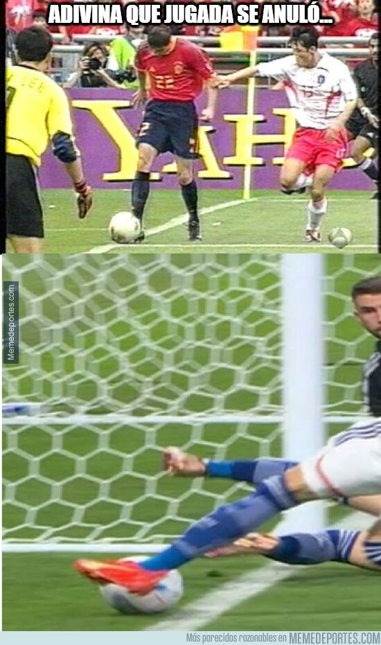 Una acción que ha sido comparada con el gol que se le anuló a España en los cuartos de final del Mundial de 2002 frente a Corea del Sur, tras un centro de Joaquín (el balón en este caso no salió en ningún momento por la línea de fondo).