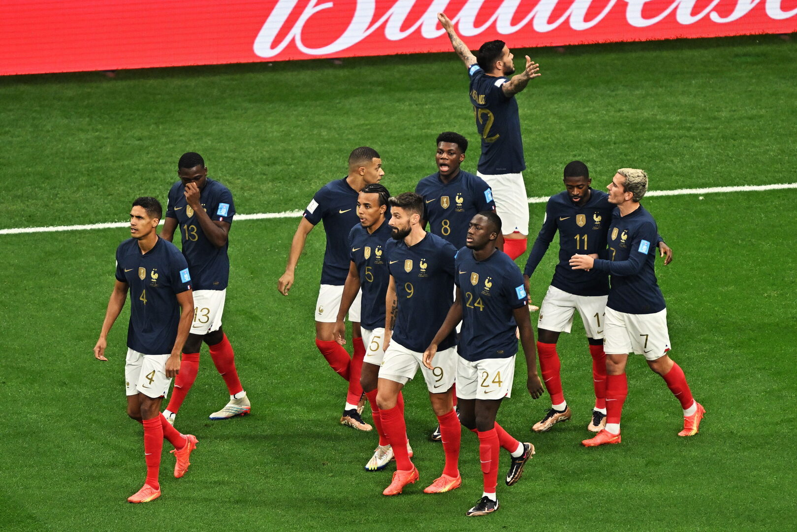 Francia, 2: Lloris; Koundé, Varane, Konaté, Theo Hernández; Tchouaméni, Fofana; Griezmann; Dembelé (Kolo Mouani, m.78), Mbappé y Giroud (Thuram, m.65)