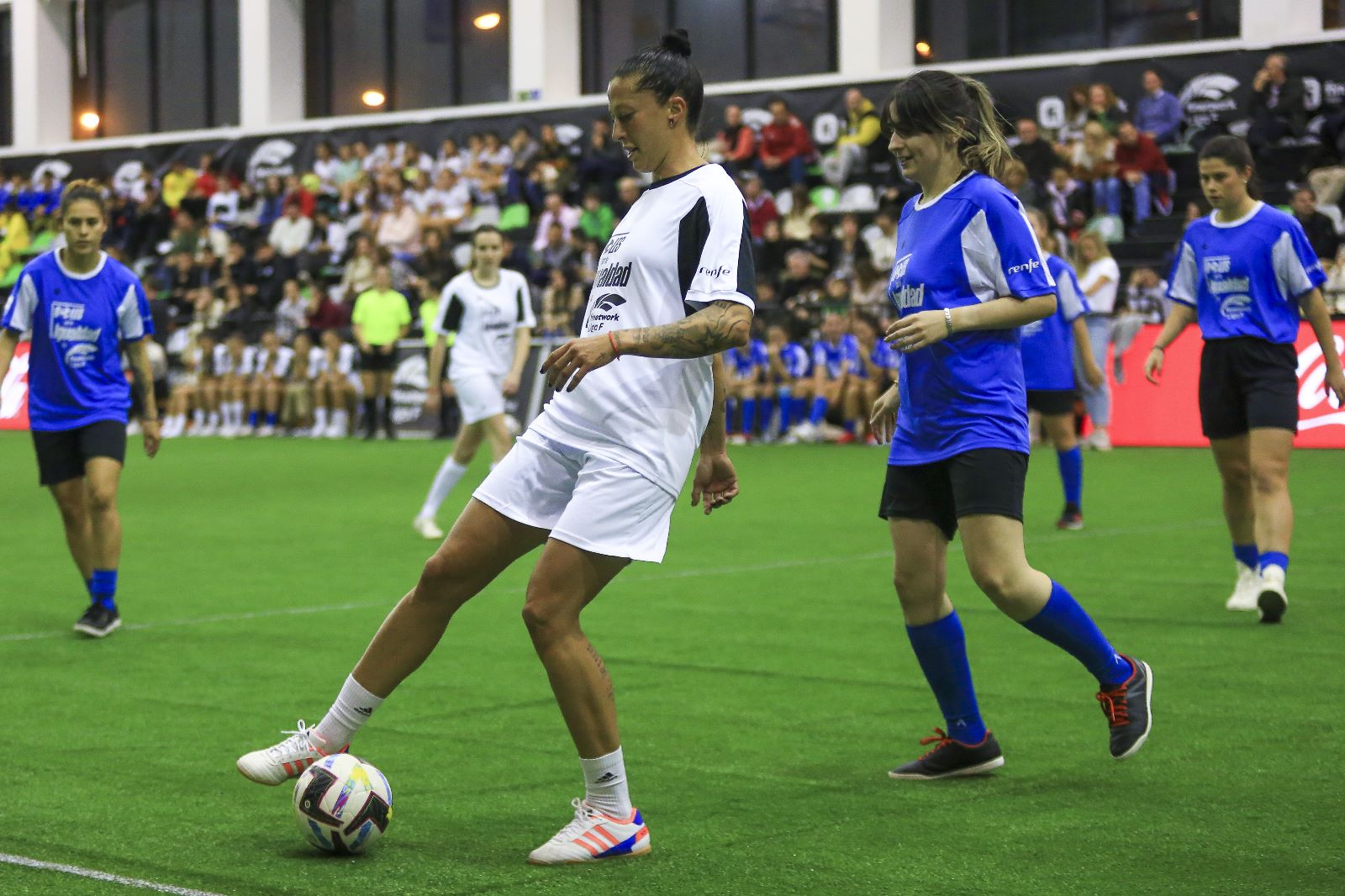 Jugadoras de la talla de Jenni Hermoso, Carol Férez, María Méndez o Lucía León, por citar sólo algunos nombres, han demostrado el creciente e imparable nivel técnico, físico y táctico del fútbol femenino español. En los banquillos, como responsables técnicos de ambos equipos, se encontraban Andrea Esteban y David Aznar, con la asistencia de Maitane López y Lola Gallardo, respectivamente. La victoria ha sido para el equipo ‘Finetwork White’, capitaneado por Jenni Hermoso —máxima goleadora histórica de la selección española—, frente a ‘Finetwork Blue’ por 8-3 tras un partido de una hora de duración (dos tiempos de 30 minutos).