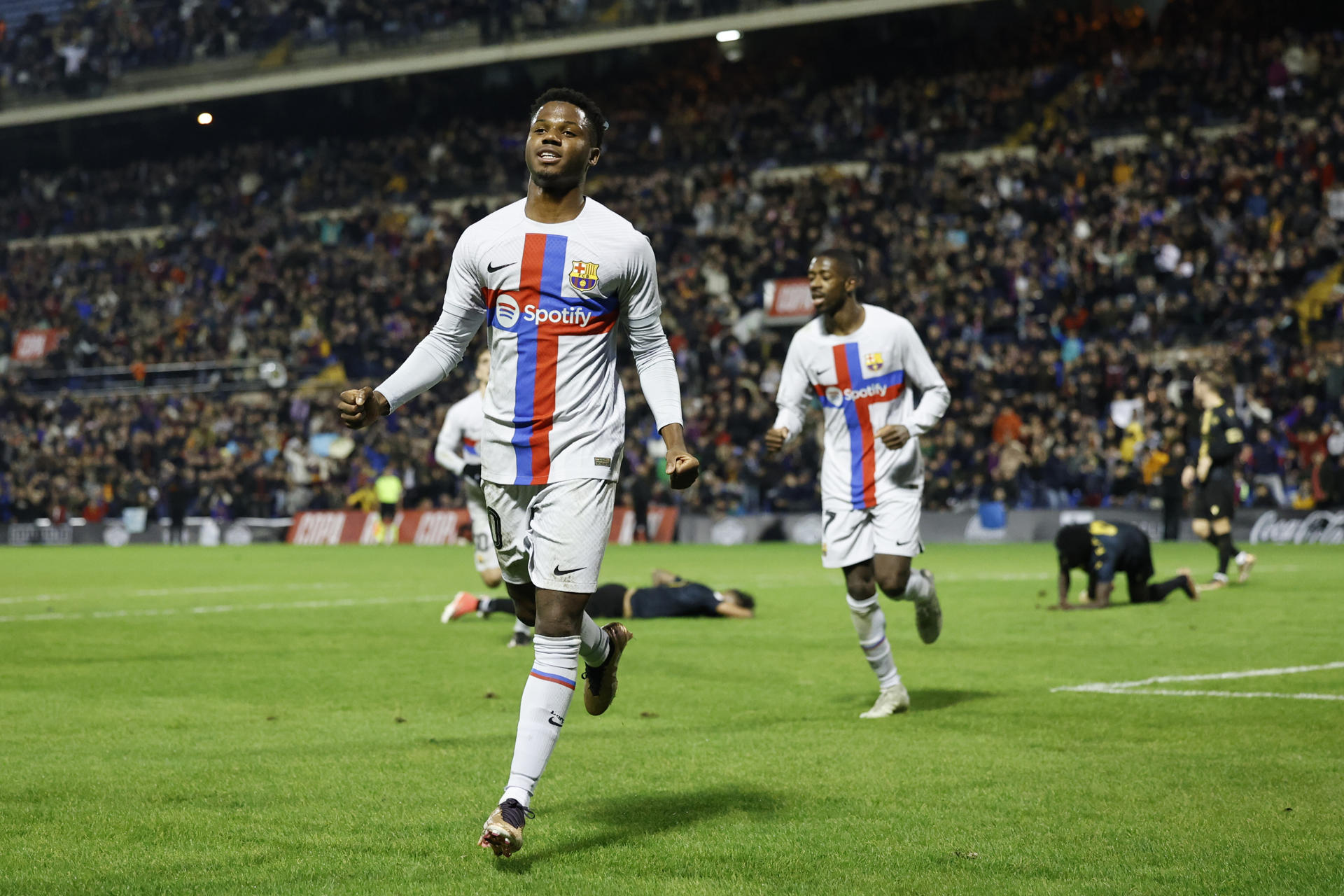 Goles: 0-1, min. 4: Araujo. 1-1, min 59: Soldevilla. 1-2, min. 66: Dembélé. 2-2, min. 74: Soldevilla. 2-3, min.77: Raphinha.3-3, min. 86: Soldevilla. 3-4, min. 103: Ansu Fati.