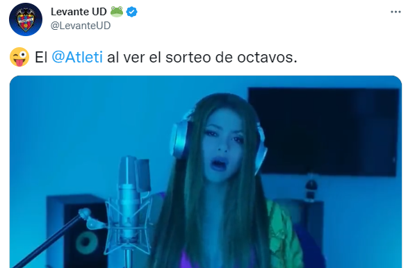 El Levante es uno de esos equipos que han usado la canción de Shakira y se la han dedicado al Atlético de Madrid, su próximo rival en la Copa del Rey, concretamente en los octavos de final, a un solo partido y en el Ciudad de Valencia.
