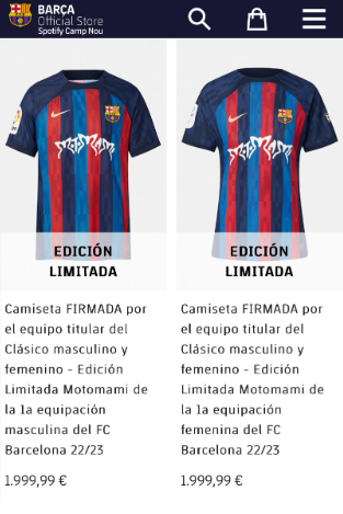 Eso sí, los precios de la camiseta edición limitada son de locura y solo hay dos opciones, 399 euros en su versión normal del equipo masculino y femenino y la friolera de 1999 euros en su versión firmada y que brilla en la oscuridad. 2000 euros por una camiseta. Eso es lo que cobra el Barcelona. Firmada, sí, pero son 2000 euros. Para muchos en redes sociales, esto supone un "atraco a mano armada".