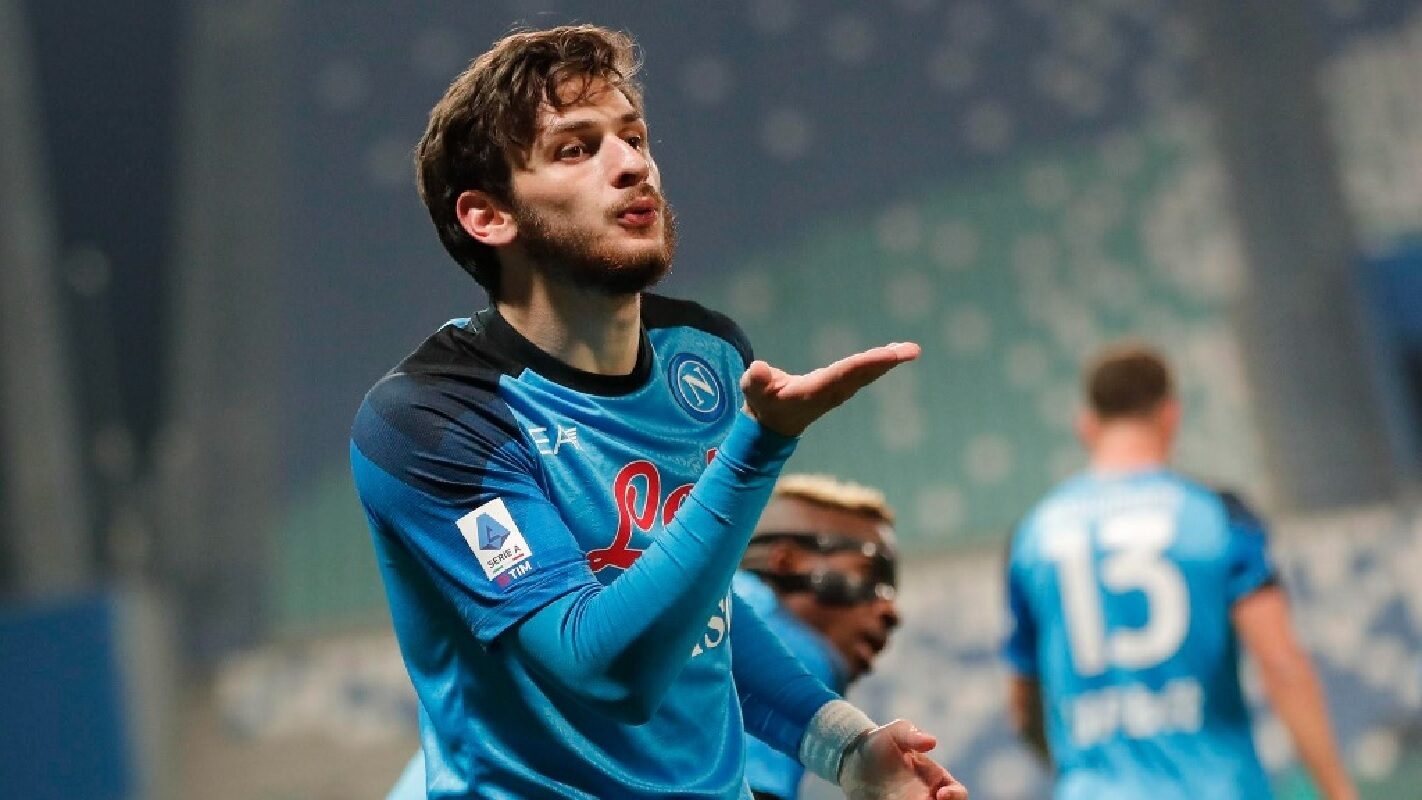 En Nápoles alucinan con el rendimiento que está dando. Nadie, quitando a Cristiano Giuntoli, director deportivo que insistió y mucho al presidente Aurelio De Laurentiis para que se decidiera a ficharle, esperaba que un extremo georgiano desaliñado y desconocido para el gran público se convirtiera en su primera temporada en una de las grandes sensaciones de toda Europa. Una estrella que consiguió apagar en tiempo récord la estela de dos ídolos para la afición como eran el belga Mertens -máximo goleador en la historia del club- e Insigne. Ambos dejaron un tremendo hueco en el corazón de la hinchada con su marcha este verano que ha ocupado de lleno el bueno de Jvicha. Su camiseta, con el pintoresco 77 a la espalda, es la más demandada y su apodo, 'Kvaradona', lo dice todo.