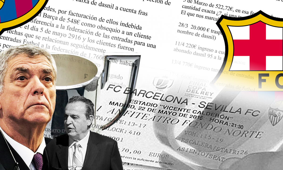 Las "aclaraciones" de Negreira a Hacienda reflejan que el grueso de estos movimientos bancarios sospechosos, unos 16 por un valor de 42.000 euros, estarían relacionados con la supuesta adquisición de entradas a la Real Federación Española de Fútbol (RFEF) para tres partidos de final de Copa del Rey que ganó el F.C. Barcelona (2016, 2017 y 2018).