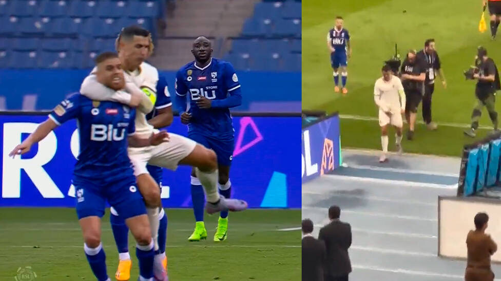 Mientras el Real Madrid se clasificaba para las semifinales de la Champions en Stamford Bridge, Cristiano Ronaldo vivió otro día nefasto en la Liga de Arabia Saudí. El portugués perdió los papeles por completo en una nueva derrota del Al-Nassr ante el Al-Hilal que aleja al equipo de Cristiano del líder y de la lucha por el título. El ex del Madrid volvió a ser protagonista por su mala actuación, que redondeó con una agresión y un gesto obsceno a la grada al final del encuentro.