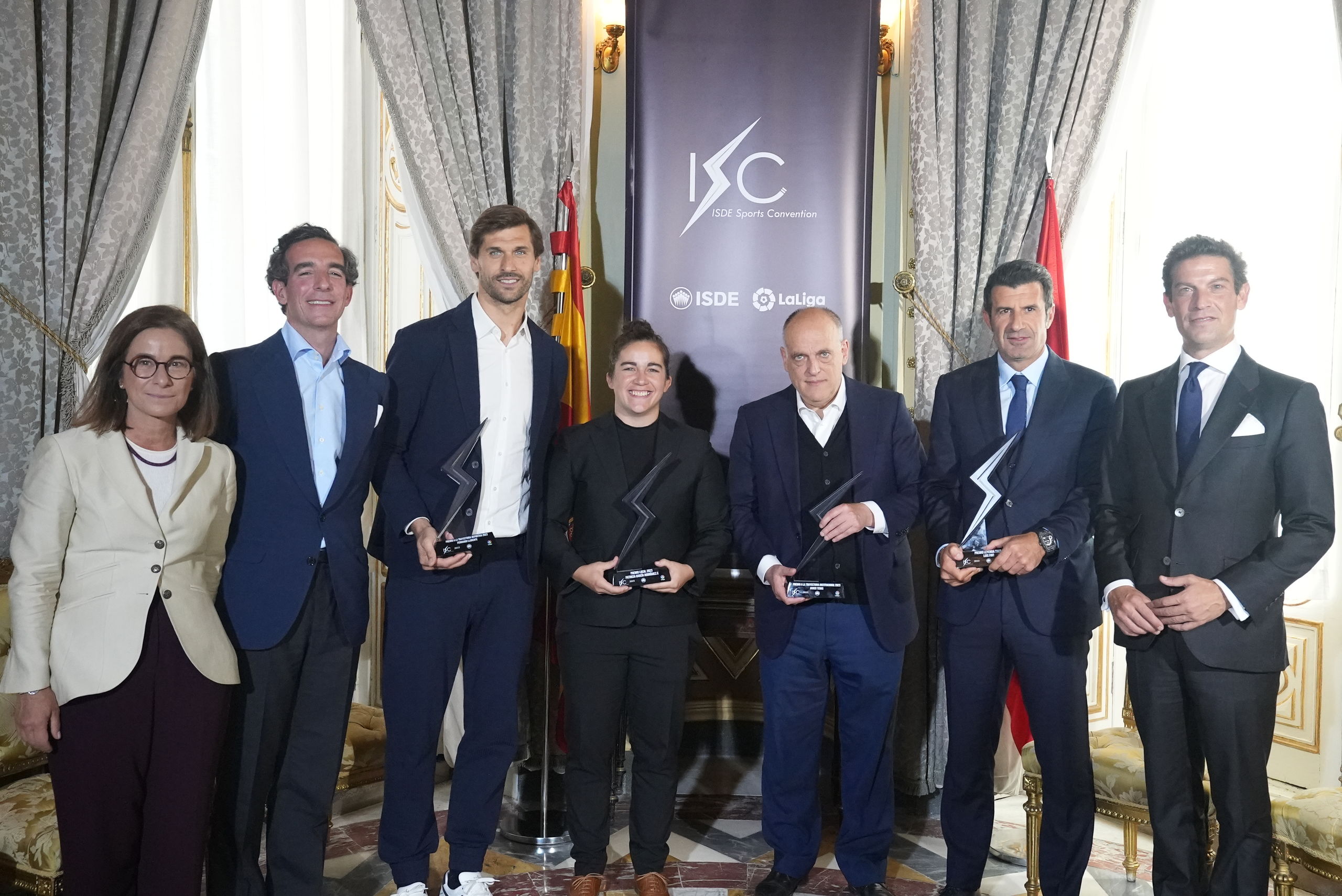 Tebas (Trayectoria institucional) fue uno de los reconocidos con los Premios ISC 2023 al igual que sucedió con los ex futbolistas Fernando Llorente (Trayectoria deportiva) y Luis Figo (Leyenda) o con la ex jugadora de rugby Patricia García (Mejor deportista de Madrid).